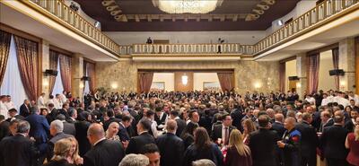 Tören Salonu'ndaki resepsiyon TBMM Başkanı Numan Kurtulmuş’un ev sahipliğinde