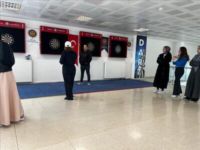 8 Mart Dünya Kadınlar Günü dolayısıyla düzenlenen dart turnuvasına kadın